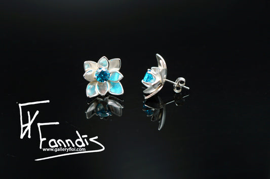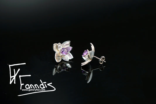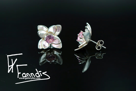 925 Silfur Blóma eyrnalokkar með Zirkonia / 925 Silver Flower earrings with Zirkonia