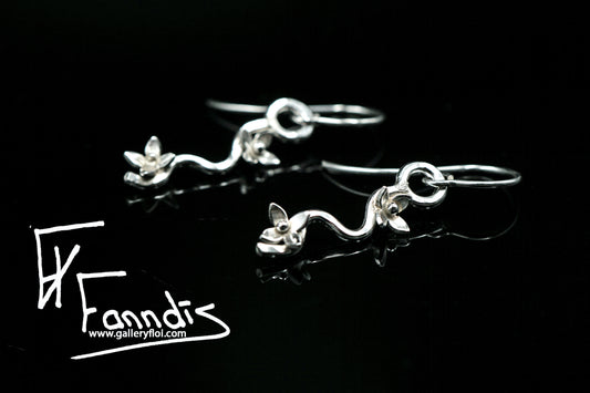 925 Silfur blóma grein eyrnalokkar / 925 Silver flower branch earrings