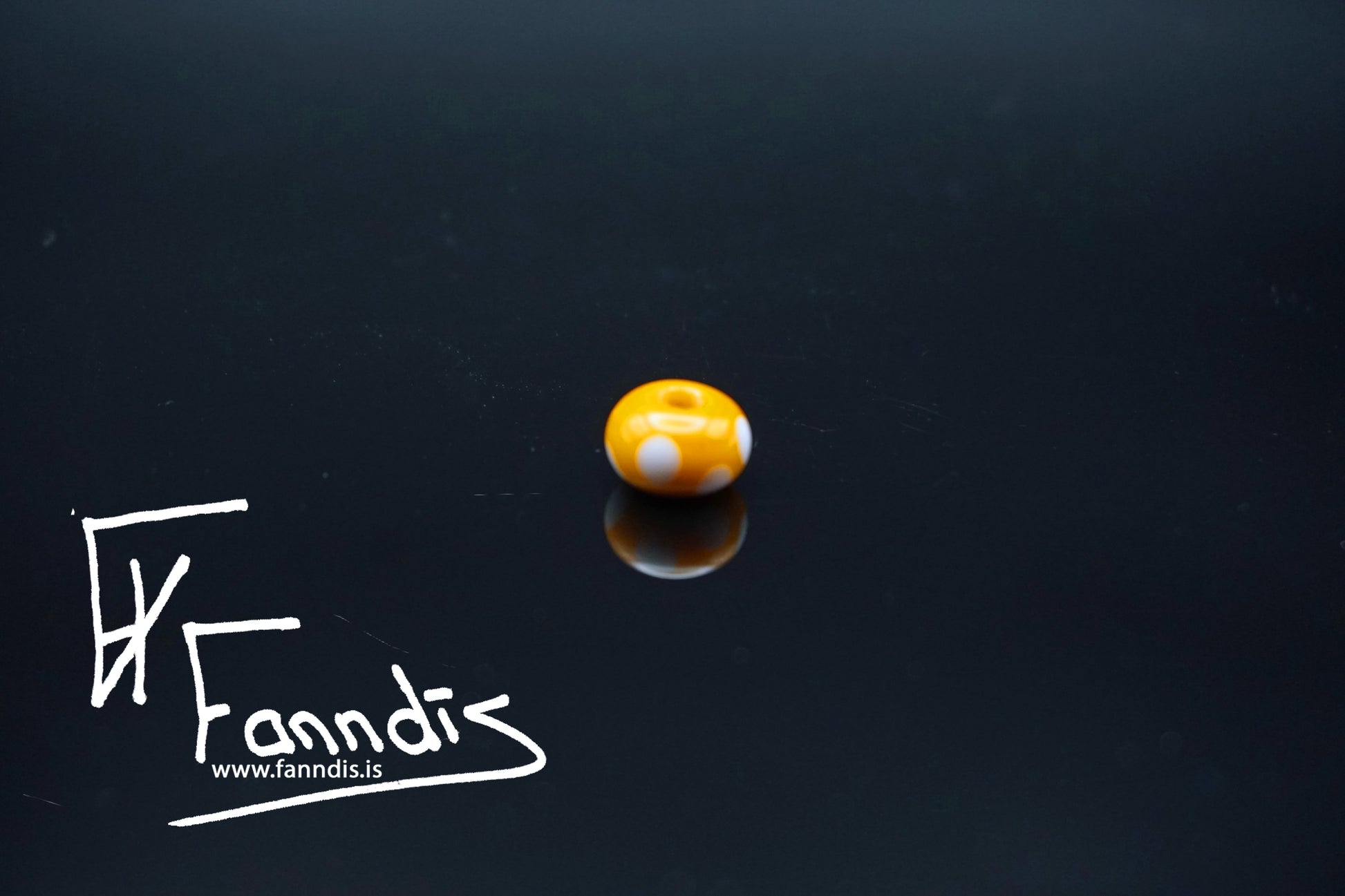 Glerperla Gulur Ockra með hvítum doppum / Glass bead Yellow Ochre with white dots